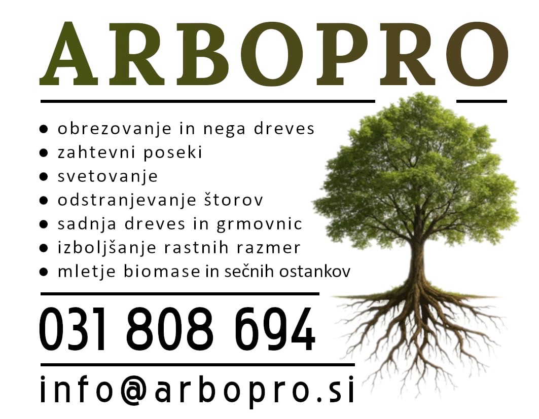 Za informacije in brezplačen ogled: 031 808 694 · info@arbopro.si